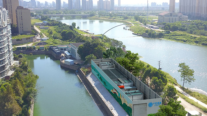 治理措施:采用“源頭截污、就地凈化、集散結(jié)合、清水回補(bǔ)”的思路,采用自主研發(fā)的 “懸浮床” 及“三相增強(qiáng)”生物膜反應(yīng)器等核心技術(shù),運(yùn)用污水模塊化裝置(CBS),在河道、泵站前池、污水匯集區(qū)域就近設(shè)置,為城市內(nèi)河、流域斷面水質(zhì)達(dá)標(biāo)提供保障。